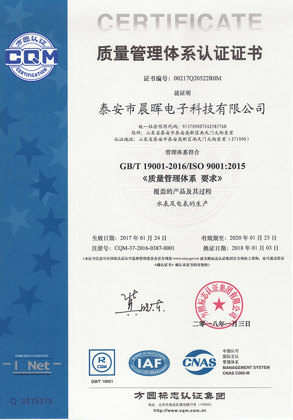 質量管理體系認證證書