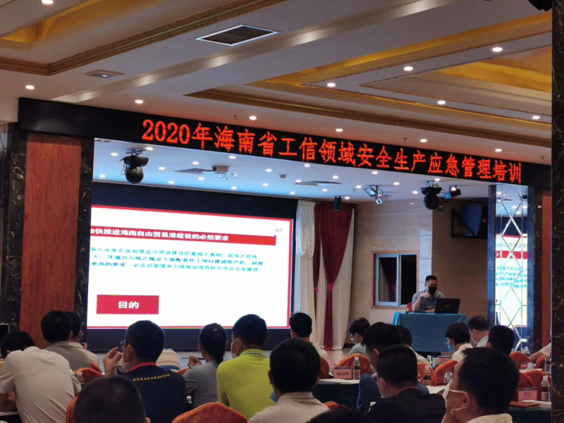 李進教授向參訓成員詳細講解了海南省危險化學品安全知識及安全提升行動方案,趙高工普及了海南省2020年消防管理形勢與對策,楊專家展示了危險化學品的安全使用和隱患排查,陳副處長分析了海南省工信領域2020年安全生產(chǎn)形勢及主要工作;最后,其他參會單位講師依次上臺發(fā)言,講解相關安全知識。